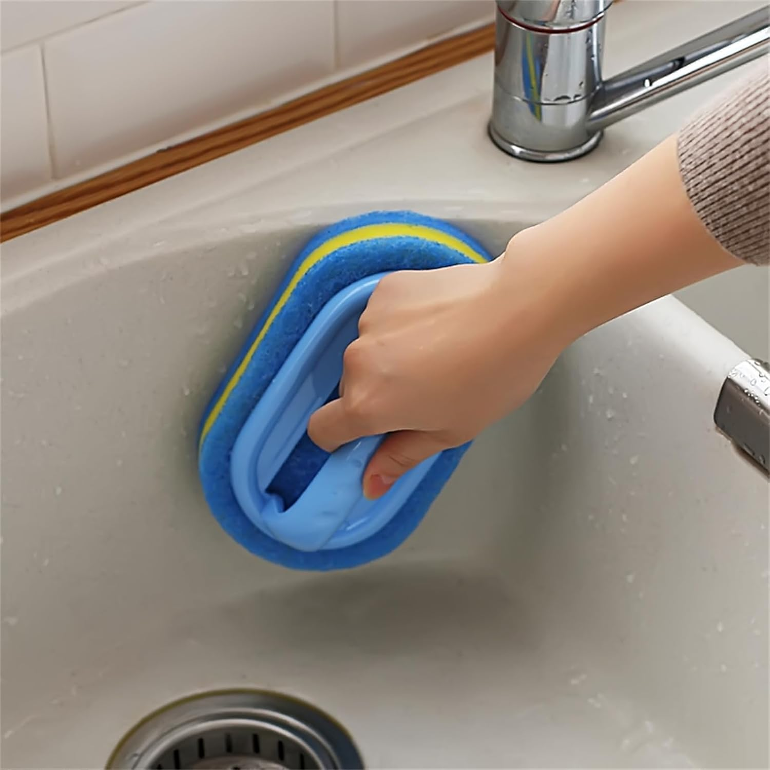 - Suitable size: A necessary cleaning sponge brush for daily life, making your kitchen, bathroom, and car clean faster and easier. The brush head is flexible, has strong cleaning power, and washes clean and durable. Suitable for all ceramic tiles, kitchens, stainless steel sinks, glass, bathroom surfaces, windows, etc.