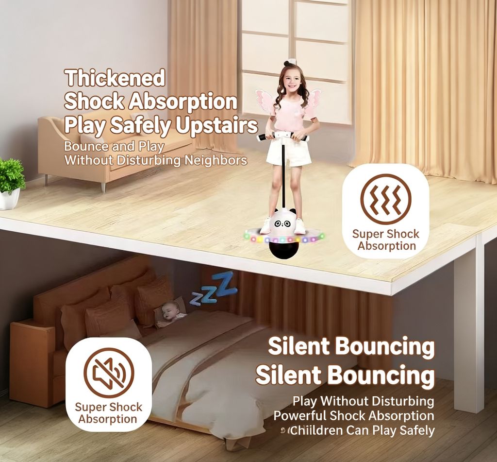 COLORFUL LIGHTS: To add an extra element of delight, this toy is equipped with colorful lights. The lights illuminate as your child bounces, creating a magical and captivating visual display. The vibrant colors enhance the sensory experience, keeping your little ones engaged and entertained.