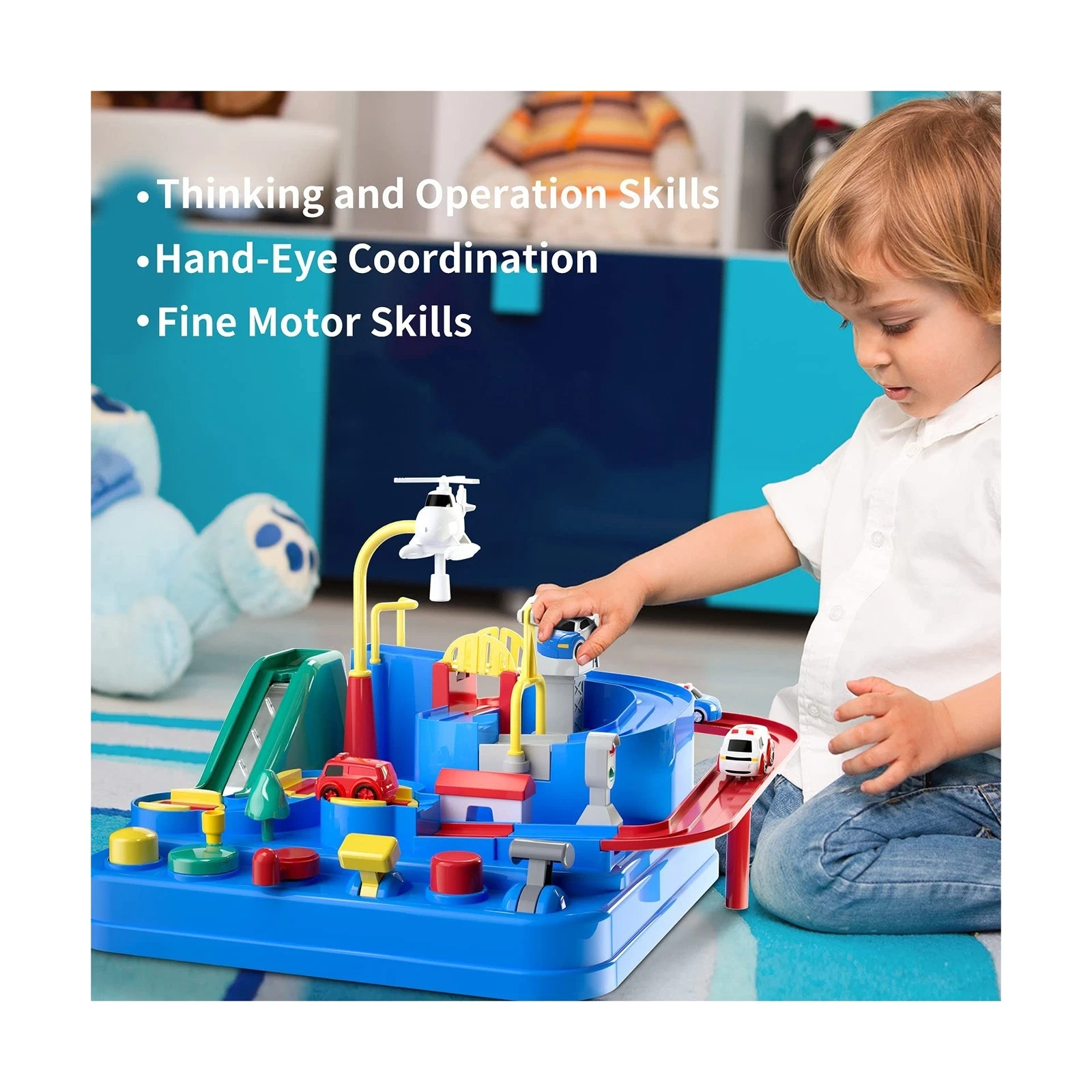 - 🏡 Innovative Design: This Car Adventure Toy Set Is Designed With 6 Control Buttons And Offers 9 Different Challenges. The Set Includes A Main Body, Track, Rotary Rod, Signals Lamp, And Crane That Need To Be Installed Onto The Main Body. It Features A Colorful And Solid Design With A Round Texture That Is Flat And No Burr.